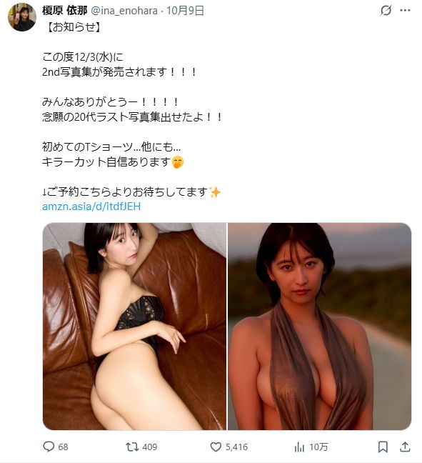 — 【公式】榎原依那2nd写真集 (@1st_enoharaina) October 8, 2025