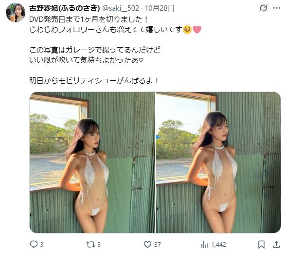 看護師として勤務しながらラウンドガールなどを務める古野紗妃(橋本咲季)、イメビデビューで日焼け跡残る身体を限界露出させてるww