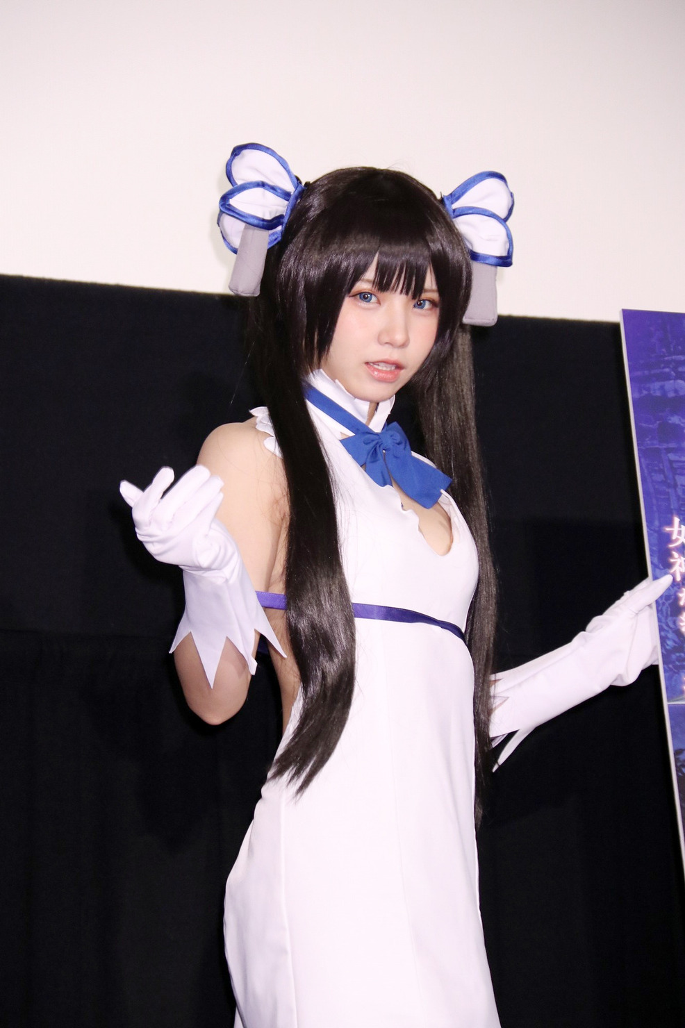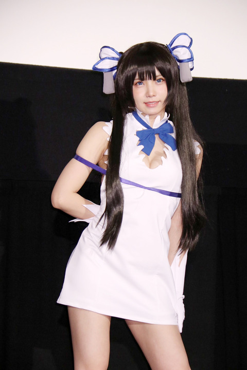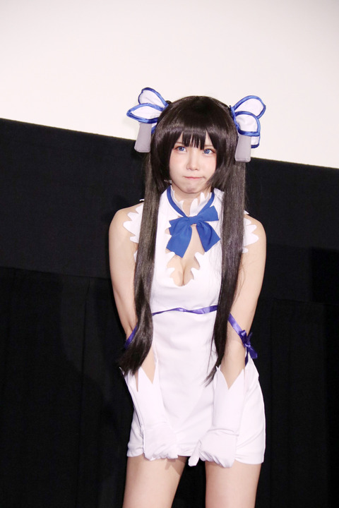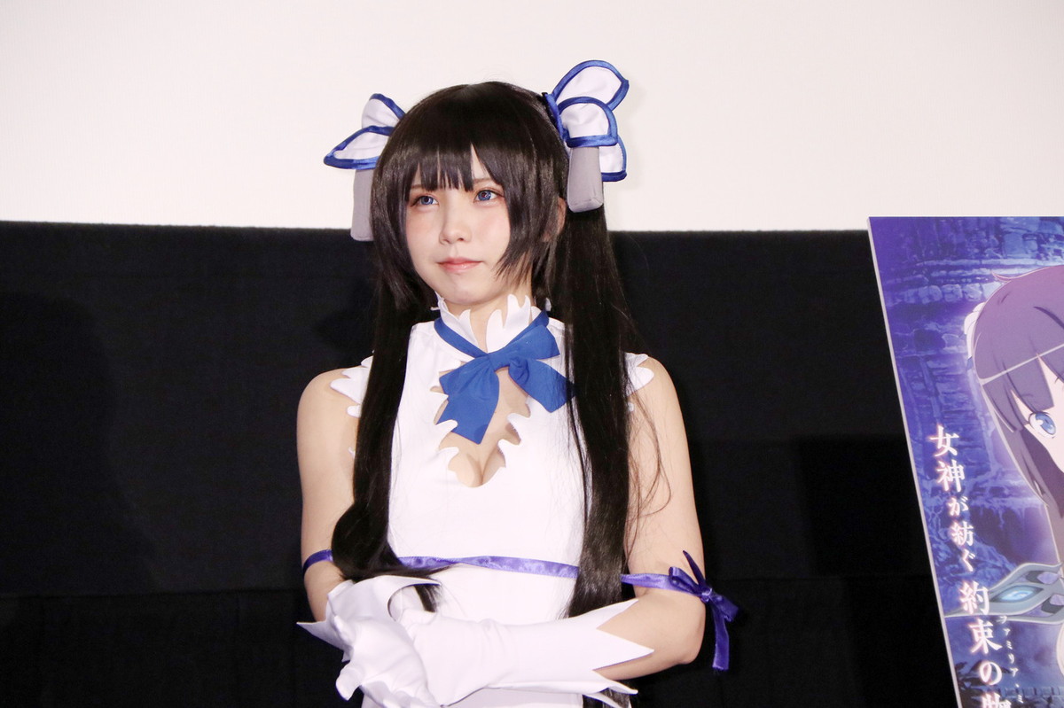 人気コスプレーヤーのえなこさんが16日、東京都内で開かれた劇場版アニメ「劇場版 ダンジョンに出会いを求めるのは間違っているだろうか(ダンまち)-オリオンの矢-」(桜美かつし監督)の公開初週舞台あいさつに登場。“例のひも”とも呼ばれる青いリボンが付いた、同作に登場する女神・ヘスティアのコスプレを披露し、「好きな『ダンまち』に関われてうれしい」と笑顔を見せていた。 https://mantan-web.jp/article/20190216dog00m200011000c.html