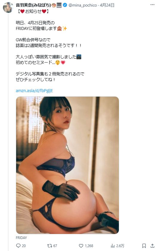 音羽美奈、FRIDAYでセミヌードしてたね