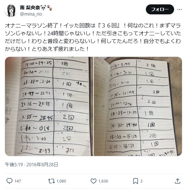 2016年オナニーマラソン(記録36回)